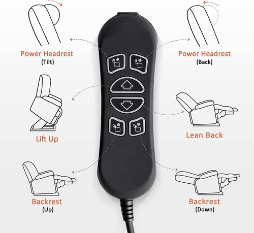 - Power Headrest: While adjustable wide headrest can be used for custom comfort while sitting upright or sleeping, they are specially designed to allow someone who is reclined back to look forward – such as toward the TV – without straining the head or neck.